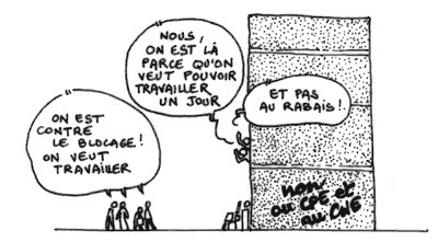 Bien sûr bon nombre des étudiants qui étaient ravis qu’on leur donne une raison de force majeure n’ont pas participé vraiment activement au mouvement. Si partout, sans exception, les AG ont grossi considérablement suite aux premiers blocages, elles se sont parfois dégonflées bien vite. Et beaucoup de bloqués n’ont plus été vus par la suite ni sur la fac ni dans les manifs. Mais pas tous, certains sont restés dans le coup, même s’il avait fallu les y mettre. Il est donc à cet égard parfaitement faux de prétendre que les blocages auraient « accentué le faible niveau de participation »  [2] comme l’a écrit la majorité de LO.