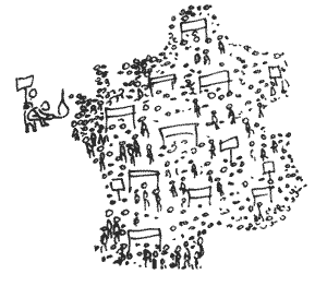 L’idée d’un comité de grève, bien sûr élu et révocable, est systématiquement rejetée comme... autoritaire. Différentes commissions permettront malgré tout au mouvement de s’organiser vaille que vaille. Parmi les conséquences de l’allergie : la désorganisation du service d’ordre de Rennes 2 [1] ; ou le fait que la première coordination étudiante nationale, pourtant proposée par des militants locaux de Sud, et qui se tient à Rennes même, n’accueille des délégués rennais que... tirés au sort et non élus (drôle de contrôle de la base !). Les commissions censées préparer les occupations ou les déménagements d’agences d’intérim réunissent dix fois plus de monde que celles qui cherchent à structurer le mouvement, et les parcours ou les heures de manifs sont d’abord choisis selon les impératifs des « actions », quitte à négliger la liaison avec lycéens ou salariés.