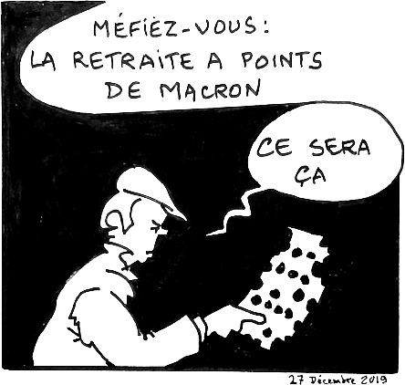 L’avantage de cette manœuvre gouvernementale c’est qu’elle montre que le gouvernement est sur le reculoir. Beaucoup de grévistes RATP ou SNCF qui tirent la langue au bout de 40 jours ne veulent pas reprendre, malgré le pistolet financier sur leur tempe, pour ne pas laisser penser qu’ils approuvent ce prétendu compromis, que le gouvernement a quasiment négocié avec lui-même.