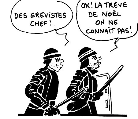 Pas de reprise du travail annoncée donc, ni à la RATP ni à la SNCF, une pluie de motion d’AG, de comités de grève ou d’intersyndicales locales qui rejettent la trêve, beaucoup de propositions d’actions, banquets de Noël, temps forts, manifestations la semaine prochaine.