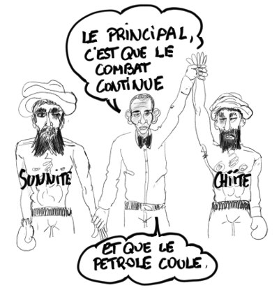 L’interminable guerre de Syrie prêche de même. Les grandes puissances occidentales ont laissé pourrir la situation, tout en encourageant leurs alliés régionaux, Arabie Saoudite, Qatar, Turquie à financer et armer chacun la milice anti-Assad de son choix. L’importance prise par l’une d’entre elles, l’État islamique, incitent ces mêmes grandes puissances à prendre langue et collaborer discrètement contre cet EI avec le régime de Assad, lui-même depuis le début soutenu par l’Iran et les milices libanaises pro-iraniennes du Hezbollah. Reste peut-être Hollande, toujours plus va-t-en-guerre que les autres !